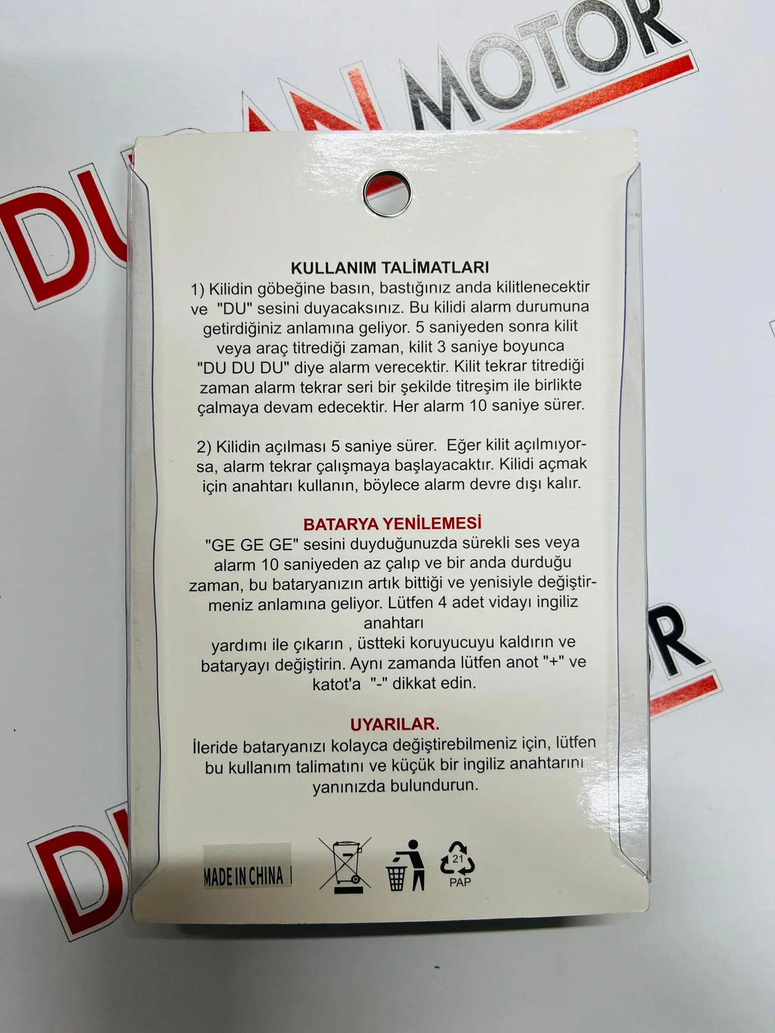| Etiketler | MOTOSİKLET DİSK KİLİT ALARM-DÜZ ANAHTARLI |